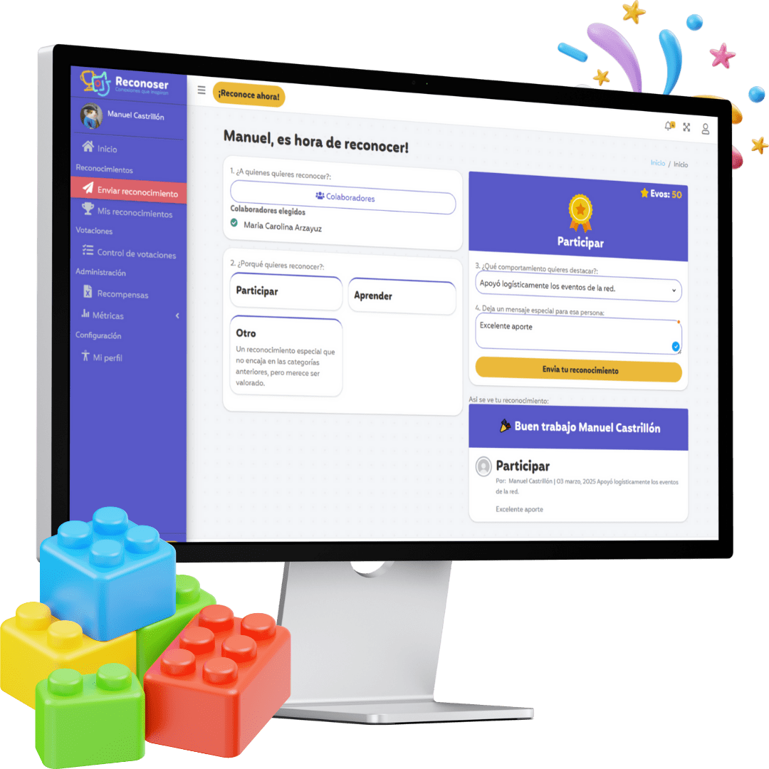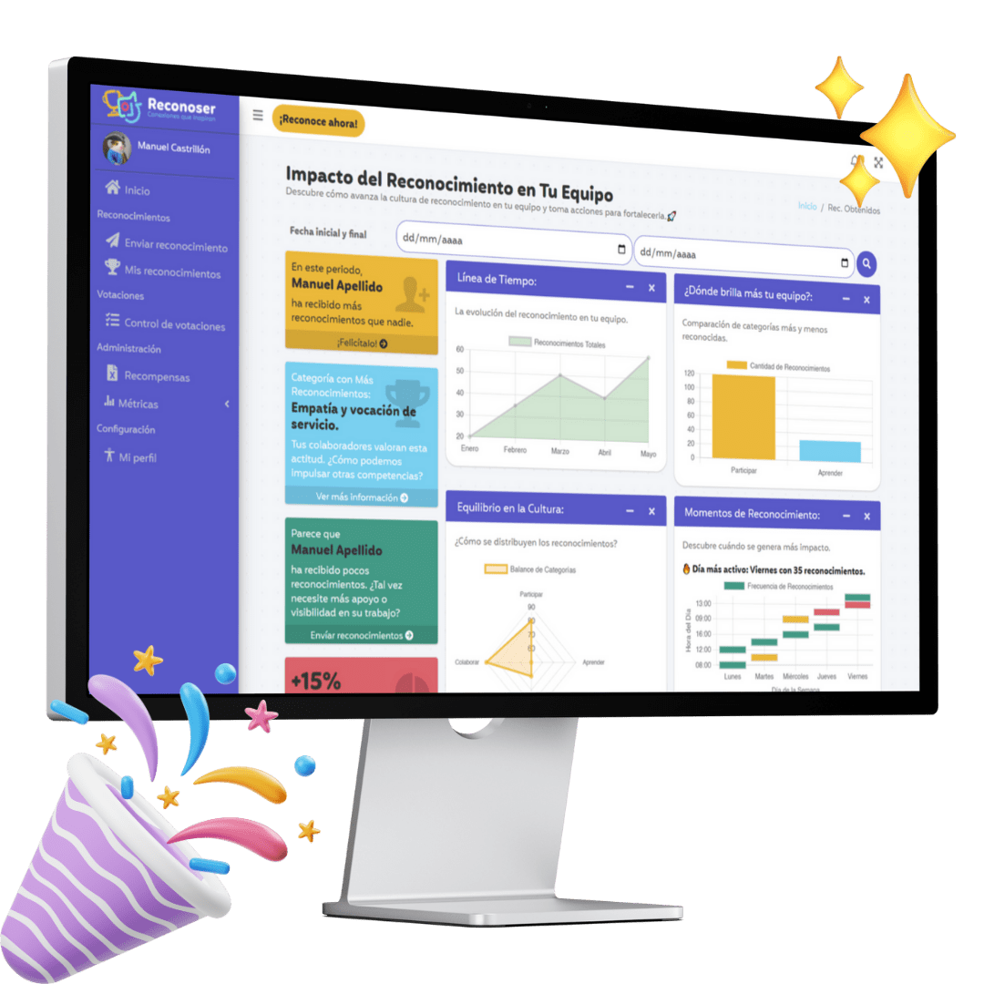 Agradece, felicita y motiva en un solo clic. Haz que cada reconocimiento cuente.
