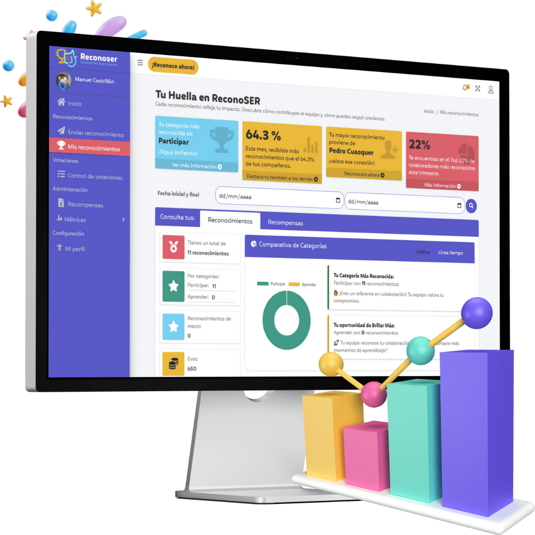 Identifica tus fortalezas y áreas de mejora con cada reconocimiento.